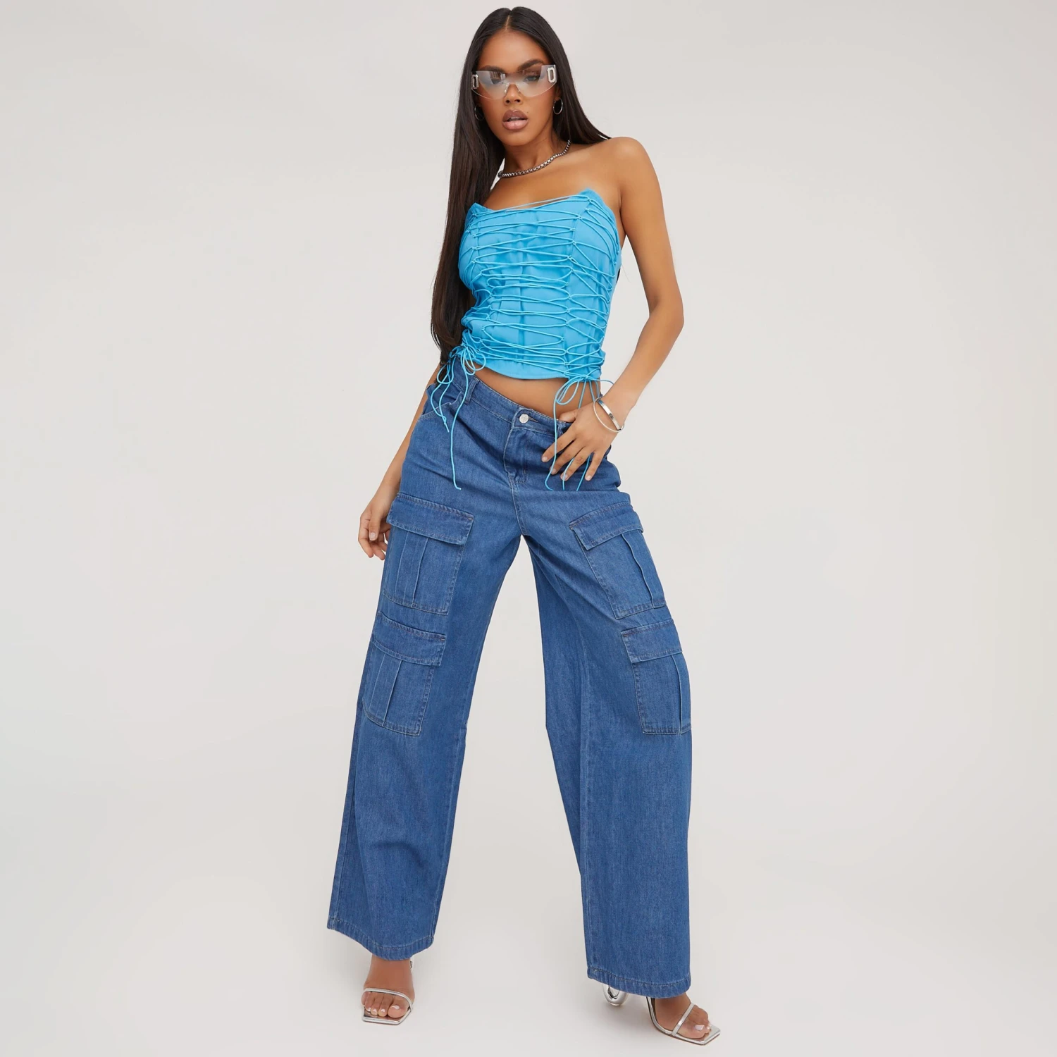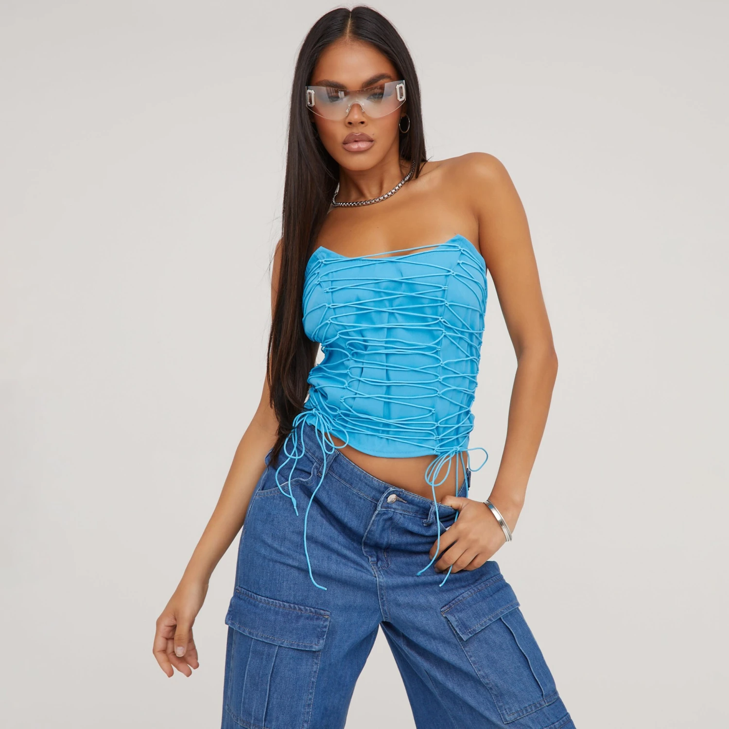 Be the first to review “EGO Bandeau Lace Up Tie Detail Corset Top In Blue Woven” Cancel reply