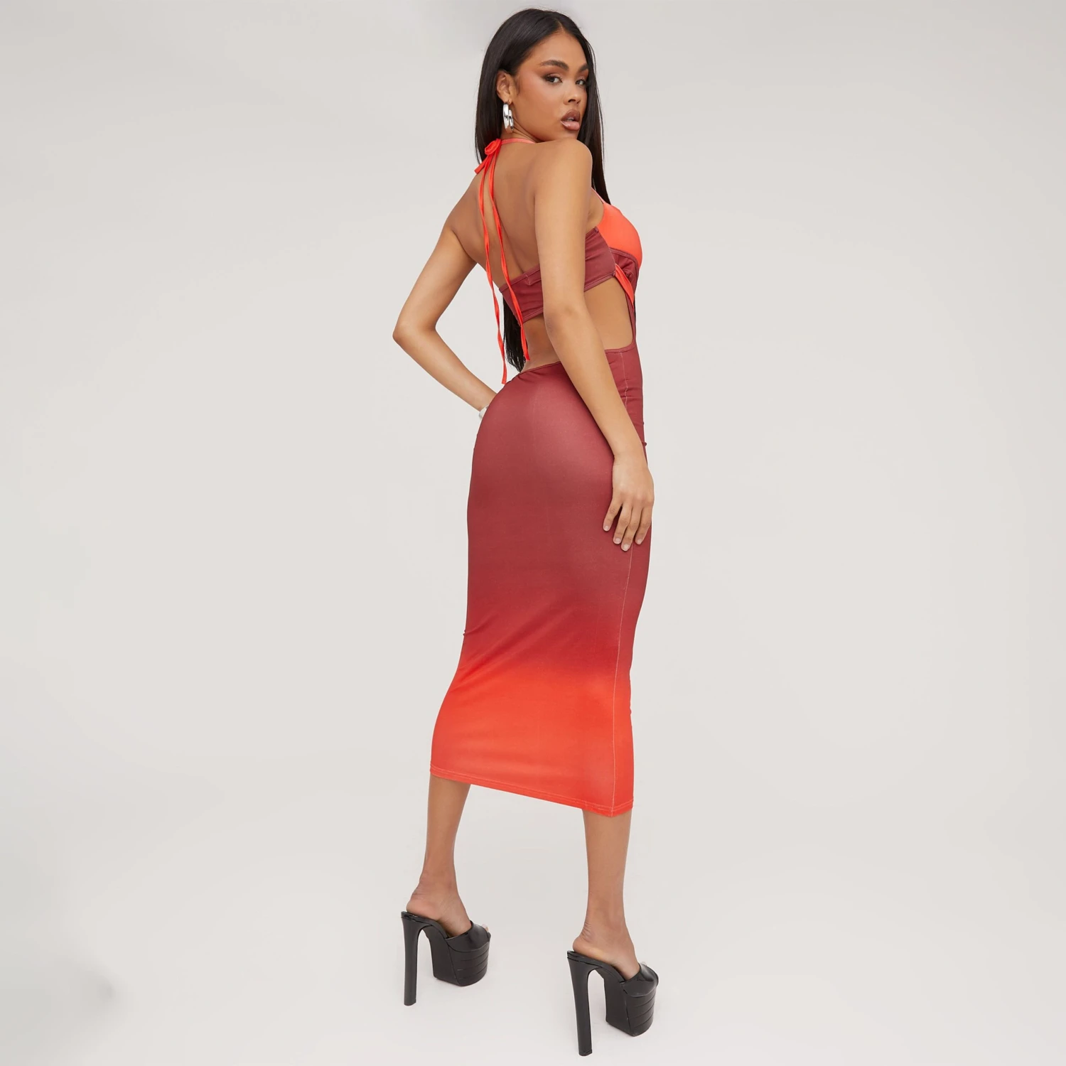 EGO Halterneck Strappy Cut Out Open Back Detail Midaxi Dress In Red Ombre