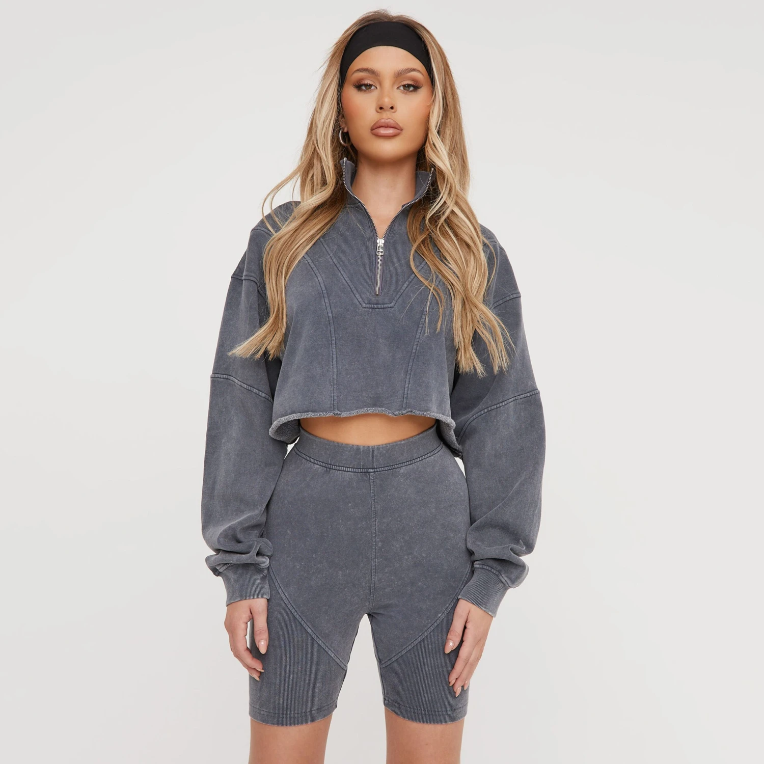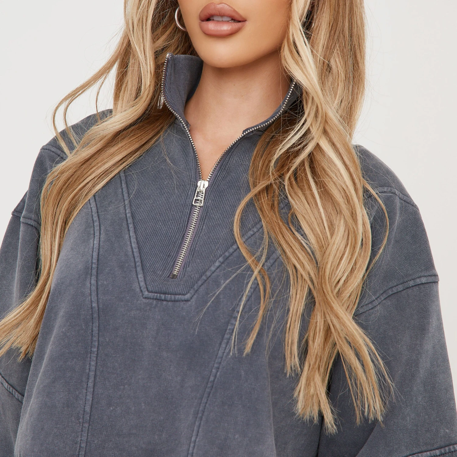 Be the first to review “EGO High Neck Long Sleeve Half Zip Seam Detail Cropped Jumper In Grey Acid Wash” Cancel reply
