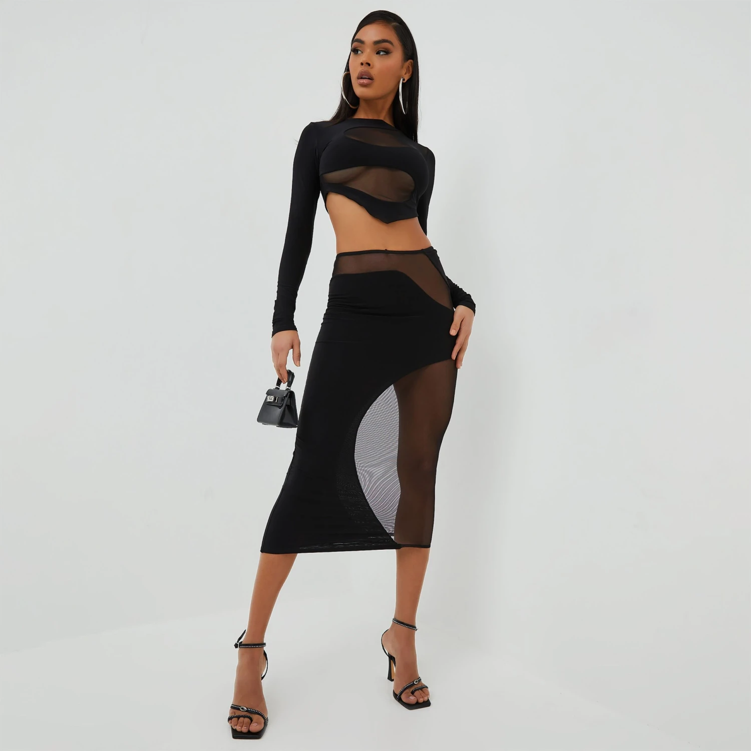 Be the first to review “EGO High Waist Contrast Swirl Detail Midi Bodycon Skirt In Black Mesh And Slinky” Cancel reply