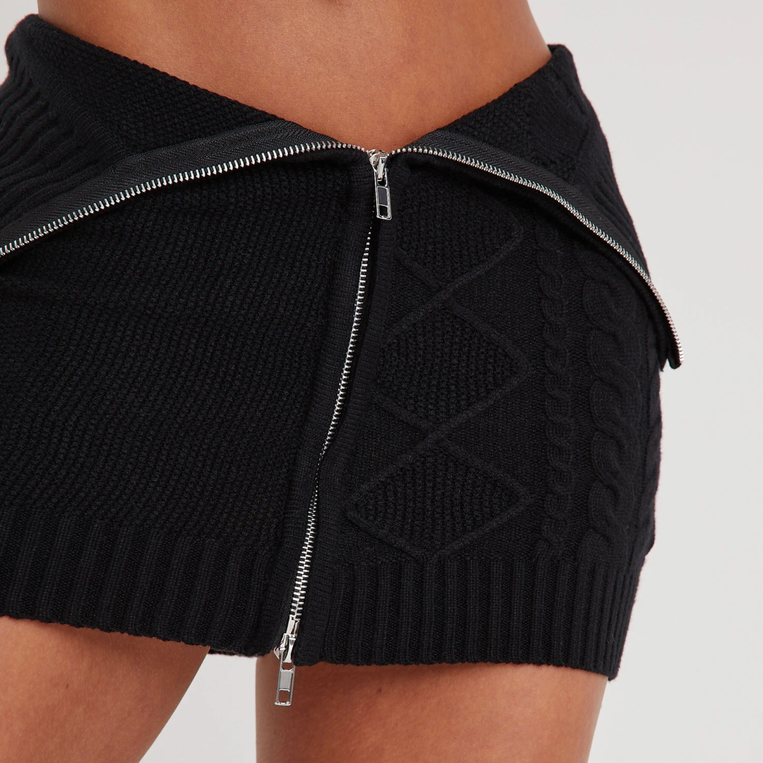 Be the first to review “EGO High Waist Fold Over Zip Detail Mini Bodycon Skirt In Black Cable Knit” Cancel reply