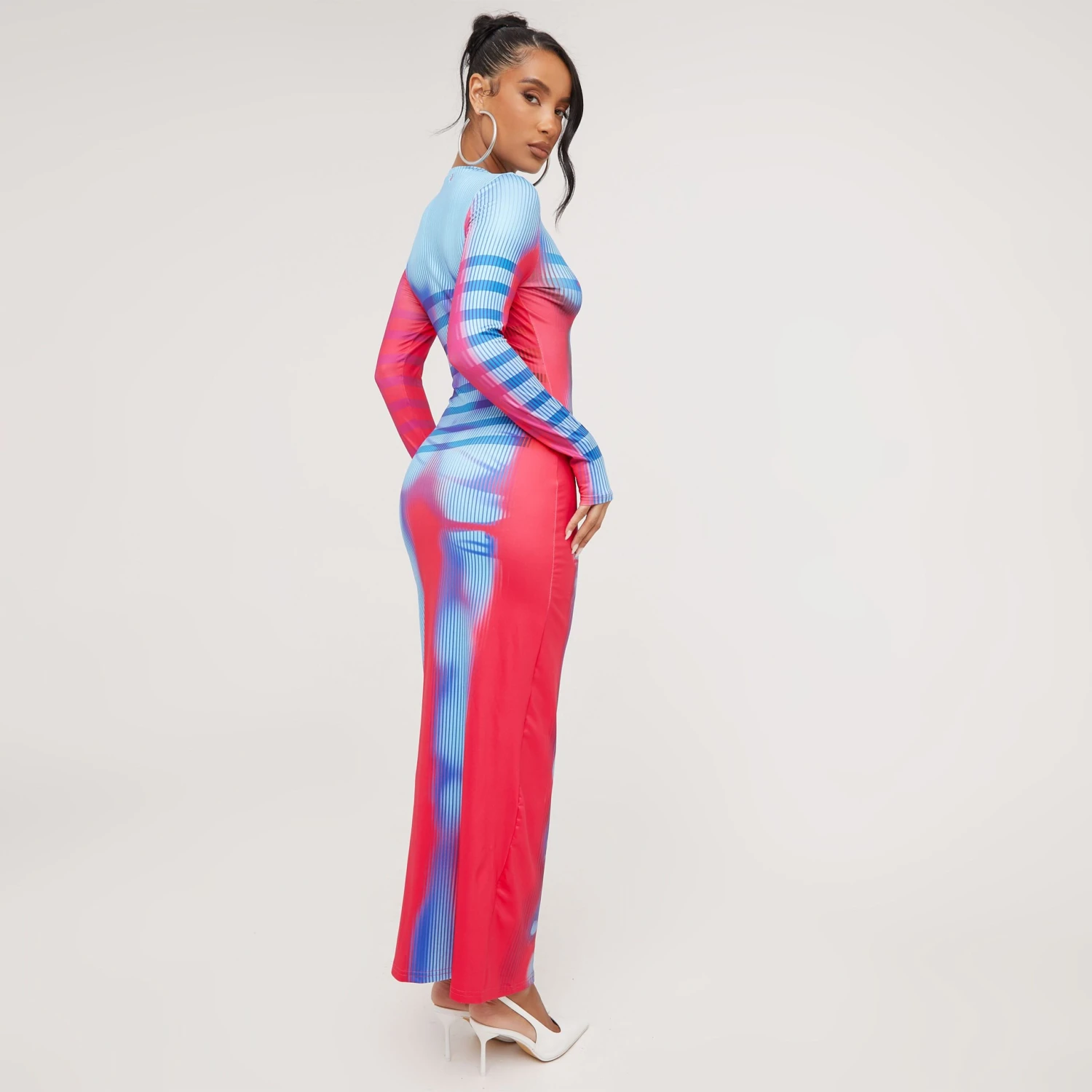 EGO Long Sleeve Body Print Maxi Dress In Pink Multi