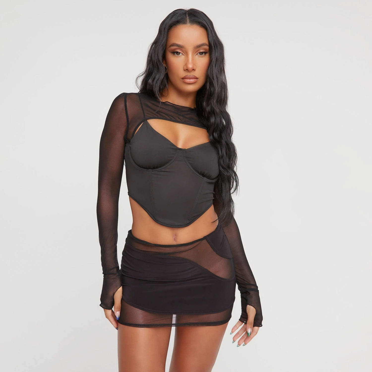 Be the first to review “EGO Long Sleeve Double Layered Corset Top In Black Mesh” Cancel reply