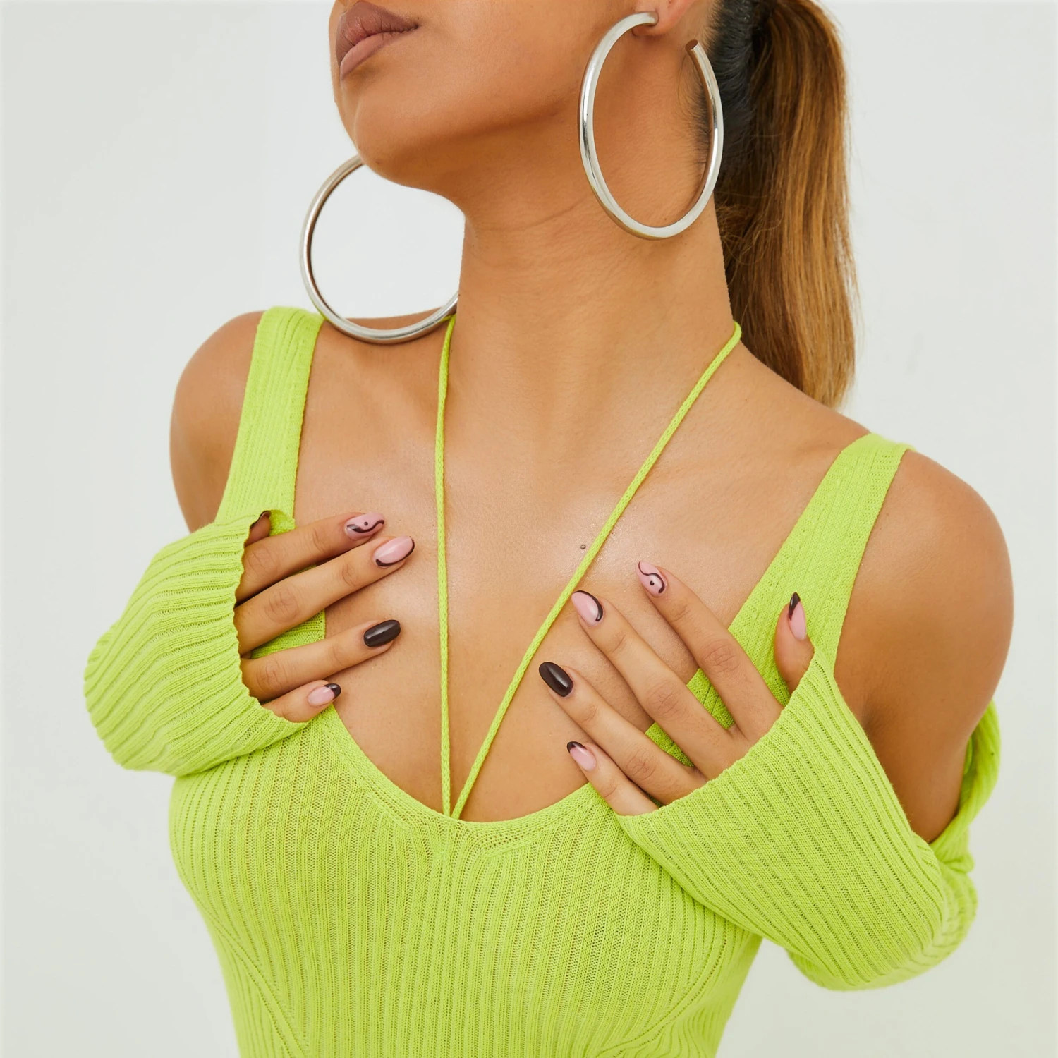 Be the first to review “EGO Long Sleeve Strappy Detail Front Split Midi Bodycon Dress In Lime Green Ribbed Knit” Cancel reply