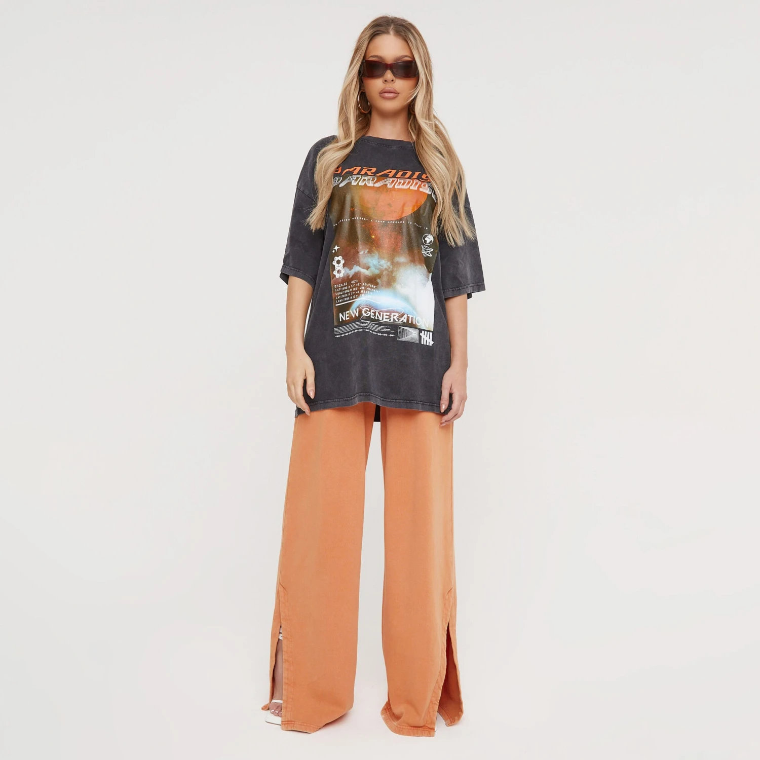 Don’t know what to wear? An oversized tee is the perfect answer doll. Featuring a grey acid wash material, ‘Paradise’ graphic and an oversized fit. Team this with some joggers and heels for the perfect entrance to the cool girl era vibe.
