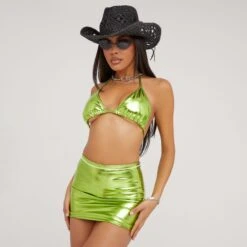 Be the first to review “EGO Triangle Bikini Bralet Top In Green Metallic” Cancel reply